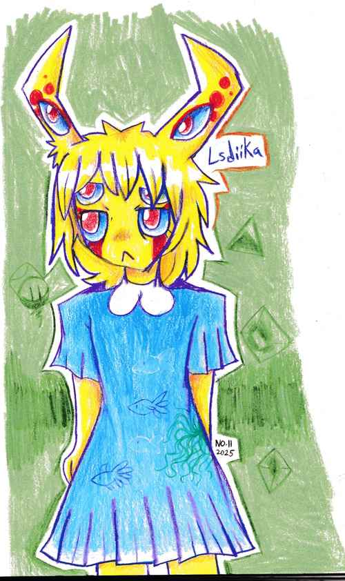 Lsdiika Strange — A surreal illustration of Lsdiika in a more surreal form. (And yes, she's based off of the LSD dream emulator logo) I also scanned this as well.