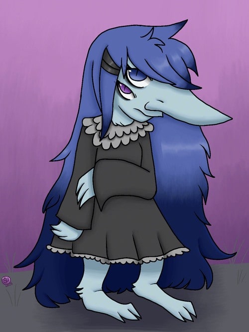 Gothic Raggy Moncha — A colorslive illustration of Raggy wearing a simple black dress. And for context, Raggy Moncha is one of my older OCS from 2013 iirc.
