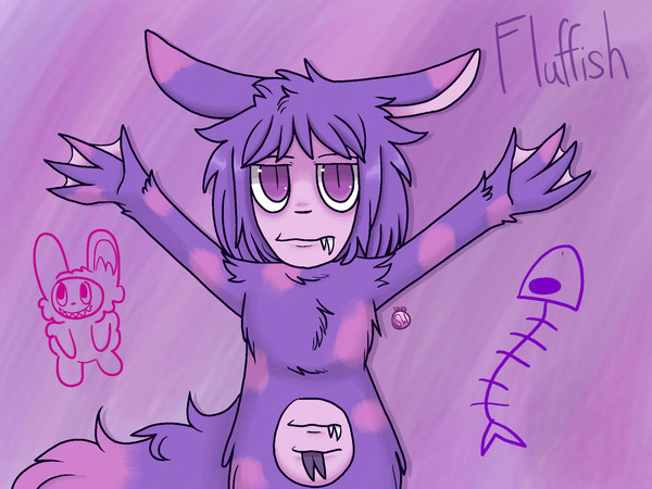 Purple and Pink Fluffish — Another Fluffish drawing, I promise this'll be the last drawing of these furry fishy monsters for a little while. Please enjoy.