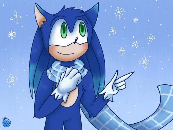 Snowy Sonic — A cute little drawing of a winter themed Sonic, and yeah.