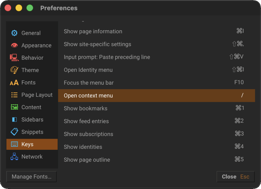 There is also a key you can bind to open the menu, though. The default is the forward slash key, but if your keyboard has a non-US layout, it may make sense to change that.
