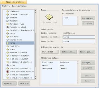 Lo primero que haremos es entrar en el programa "Tipos de Archivo" y añadiremos uno nuevo en el grupo "text" dejándolo tal que así.