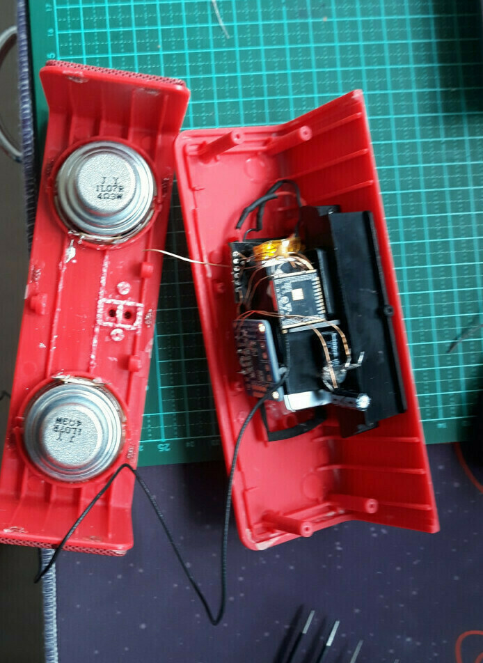 All that was borked was it's battery, and I still had one of those lying around. So in a jiffy the Speaker was fixed, no excuse to throw it out, and no excuse to use it as we already have 2 great bluetooth speakers. My partner was still not convinced it was not trash, so I had to make it into a project. The best worst thing I could imangine at the time was an internet radio that allowed a connection to only a single internet radio station, thus defeating the whole point of internet, and creating a "great" piece of Internet of Things hardware. A single Station internet radio player - what a time to be alive.