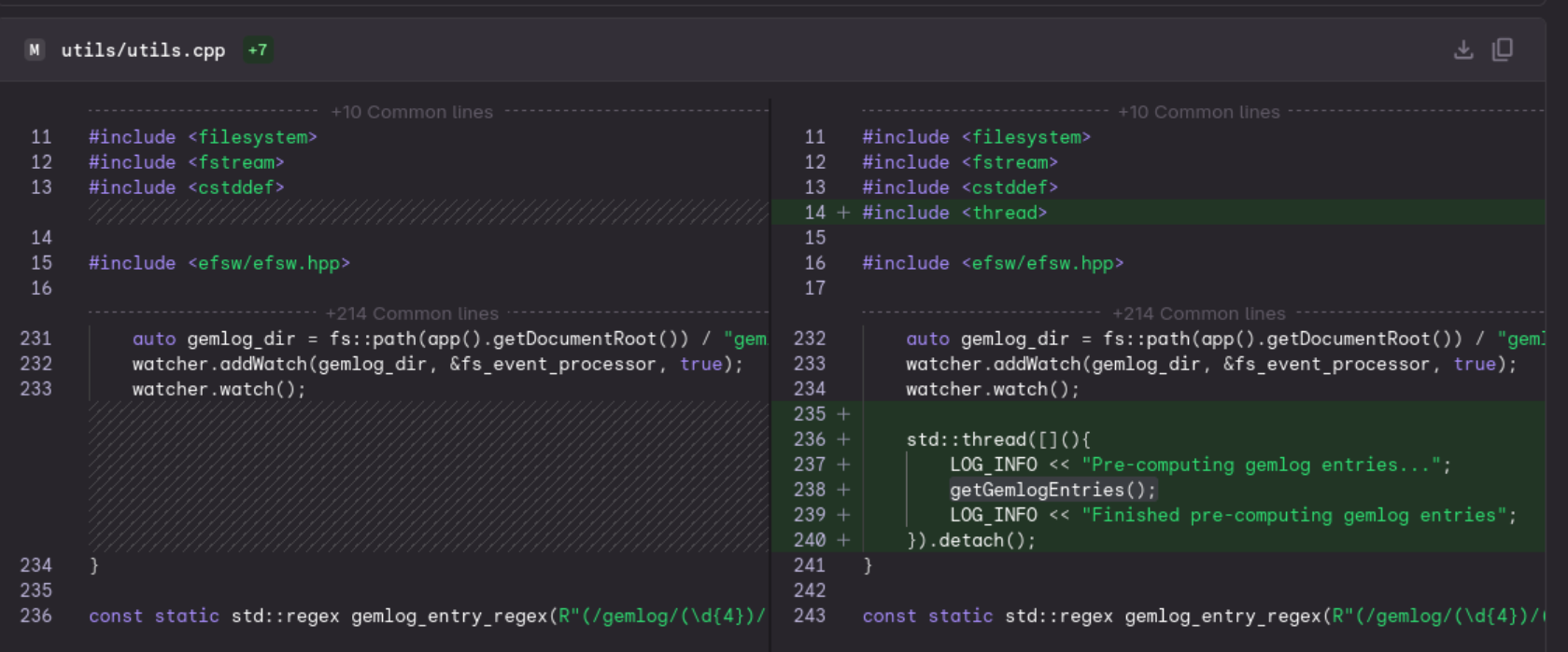Maybe Jules is just very web-brained. Let's try something different and more specific. "Please look into the C++ files, understand and suggest changes to reduce unnecessary server compute and IO". Jules decided it should delete the in memory caching for post entries. Citing "reduced server IO and workload".... Yes, but now every time someone loads the post archive or requests the Atom file, it walks the entire archive directory and reconstruct it from scratch. That is MUCH more expensive then just caching them in memory. No no no!