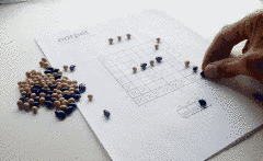 photo of the norpet paper board accompanied with soy and black beans, and a hand starting to solve it