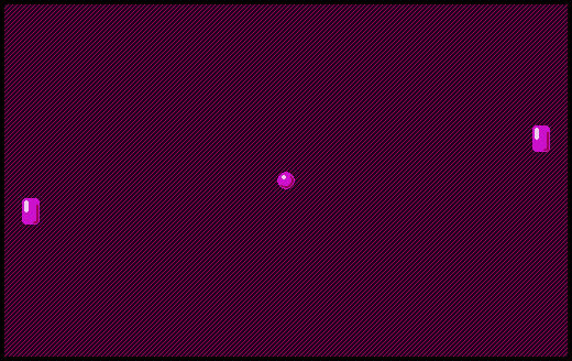 screenshot showing the stage of the pong game: a couple of paddles at the sides, and a ball at the center