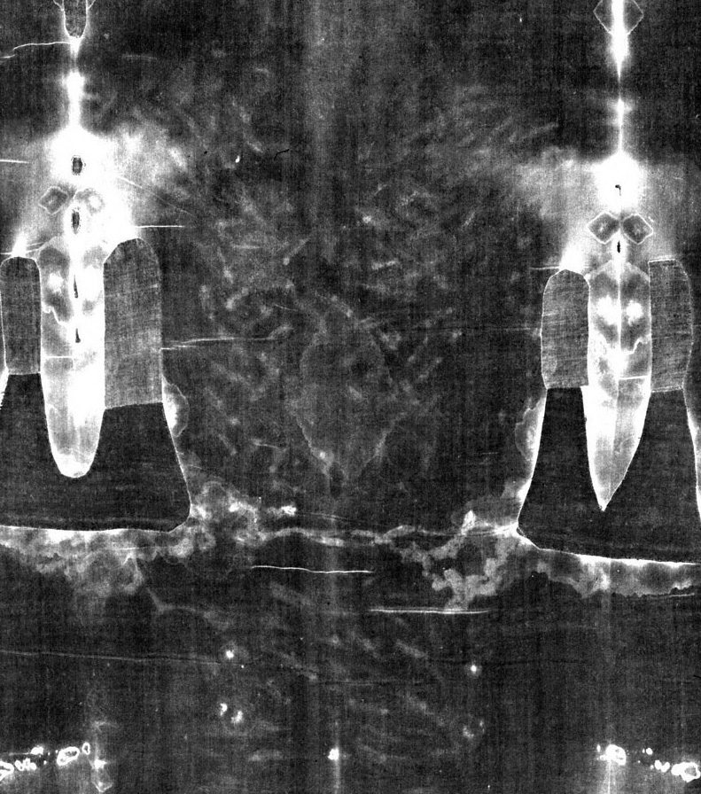 První říká, že při vzkříšení z Jeho těla vyzařovalo světlo tak intenzivní, že způsobilo tento obraz. Světelná energie několika miliard wattů bez tepelné, jinak by se plátno prakticky hned vypařilo.