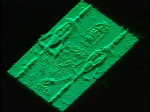 Dvojí obraz lidské postavy je anatomicky přesný a navíc ve 3D. Je velice prchavý a pouze na jedné straně plátna. Jde o velmi tenkou vrstvu nacházející se na povrchu vláken. Má tloušťku asi 1/16 lidského vlasu a jde snadno odstranit žiletkou.