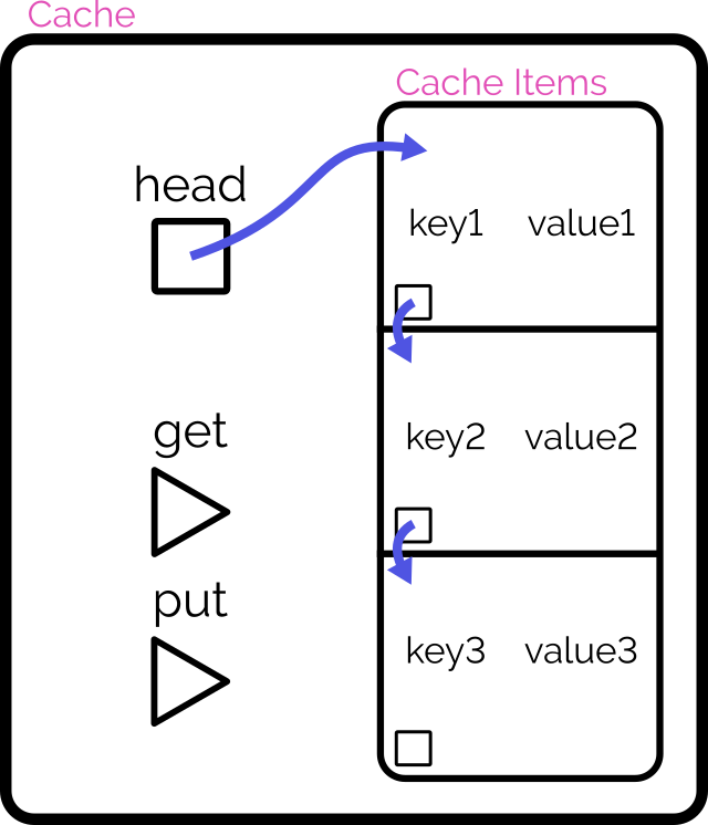 - Add a hash map (or similar language-specific structure) for fast lookups by cache key