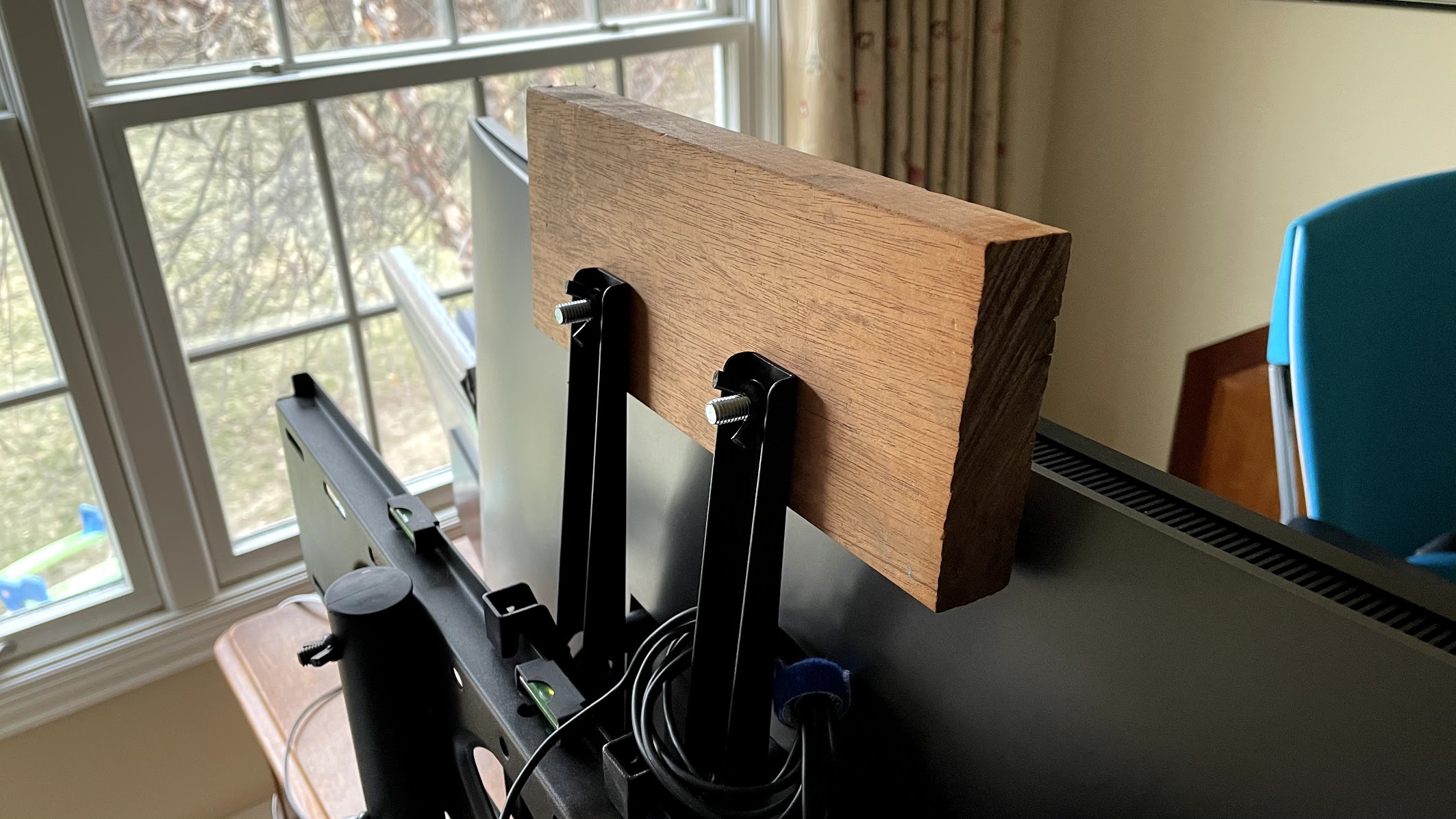 so that I could then attach the scrap wood to my monitor’s mounting bracket: