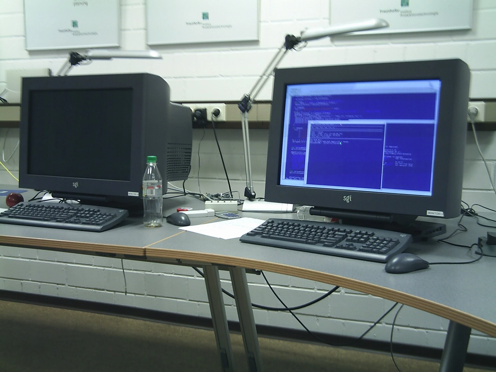 I was mainly working on drilling simulations on this machine. Sometimes I worked directly at one of the 2 terminal screens of the Onyx, or often I used a nearby Linux machine and forwarded the X11 windows to my local screen.