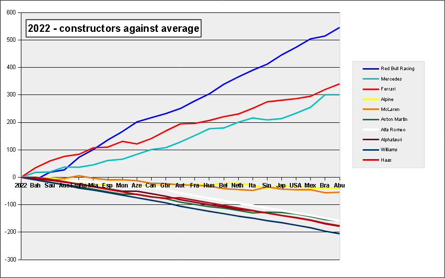 The "average driver" scores 5.1 points (with the same caveats that it can vary). Below average teams are on a downward slope.