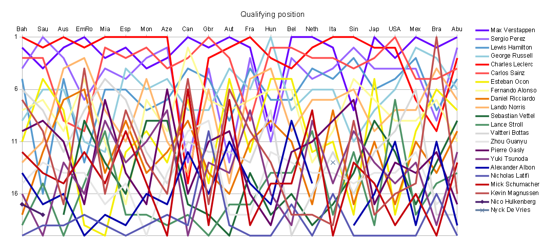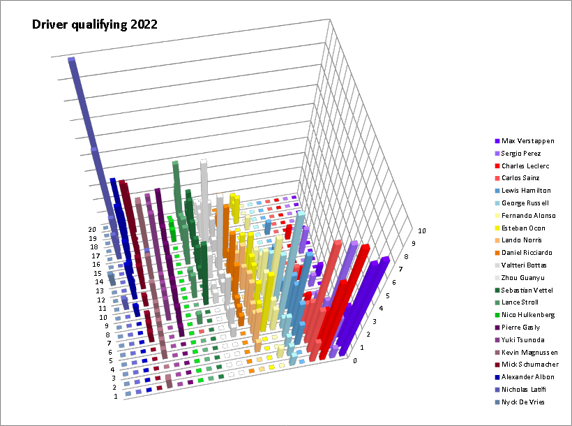 Note: qualifying stats are for normal qualifying, not "sprint qualifying", and before any grid penalties are applied.