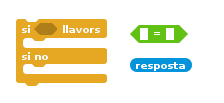- Ara, busca el bloc punxegut de la categoria d’operadors. És verd i té un igual al mig. Aquest bloc comprova si la resposta que ha posat l’usuari és igual a la resposta correcta.