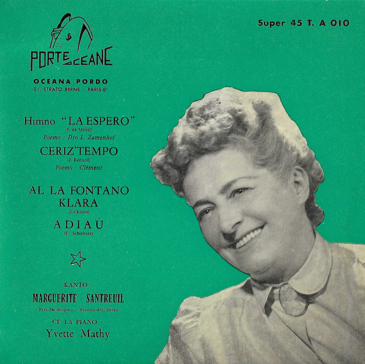 Marguerite Santrueil also made many recordings in French. Only records with Esperanto lyrics are included here.