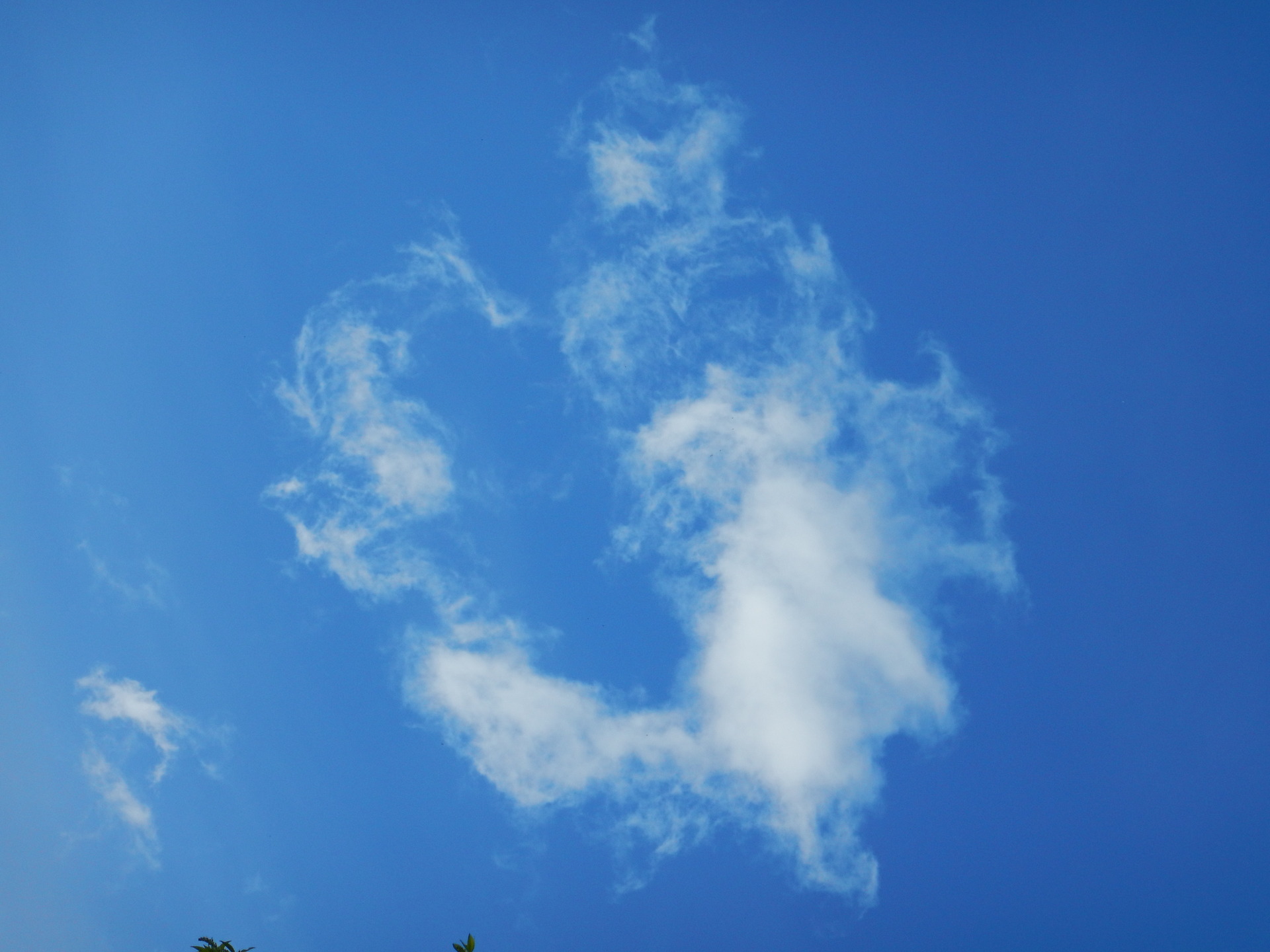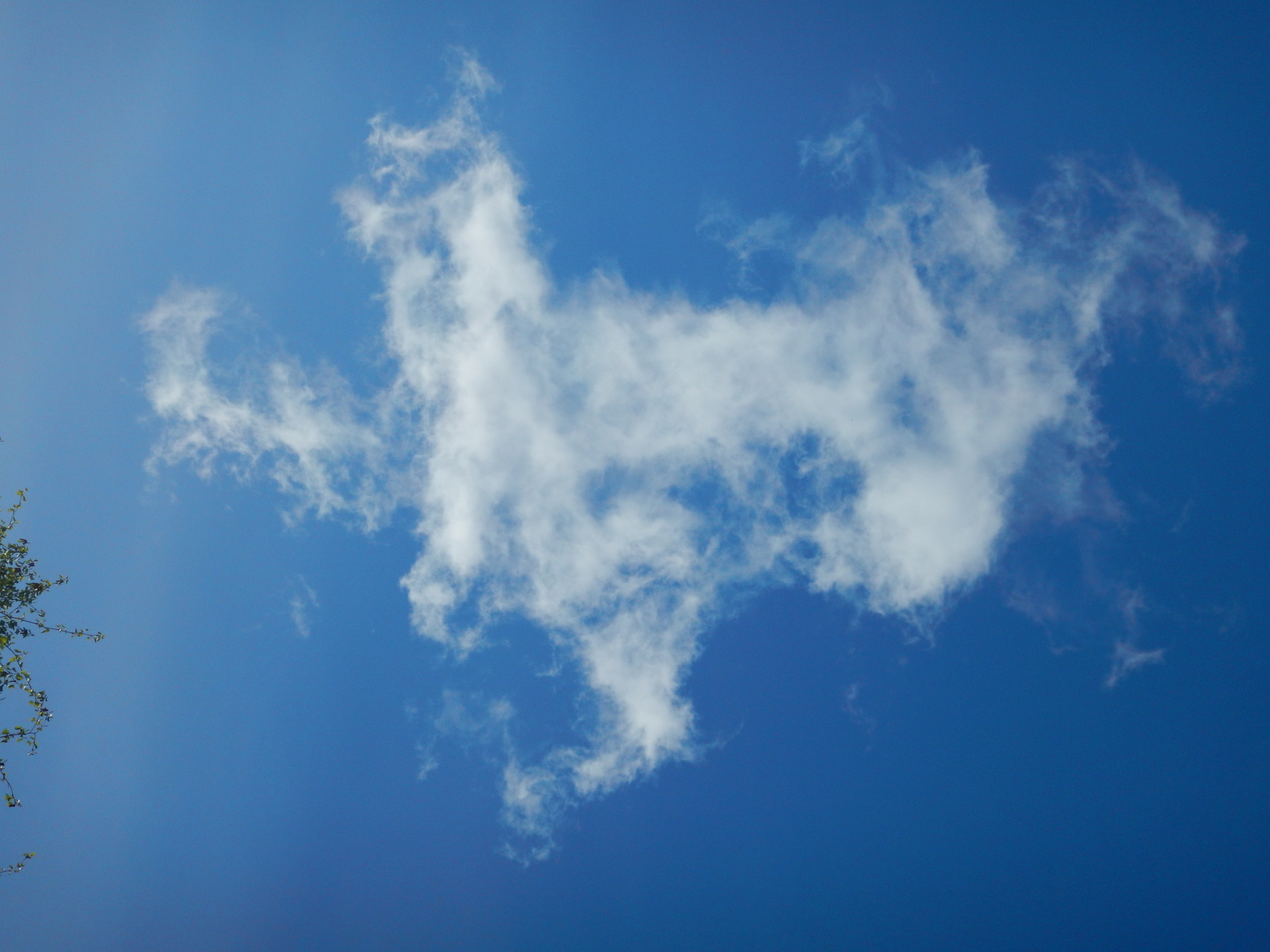 Last Friday afternoon (May 17) I was laying in the grass on the yard, and I observed some very dynamic activity in the cumulous clouds overhead. Massive clouds were changing dramatically over the course of seconds. For the last half of the show, I was able to grab some photos of interesting cloud shapes.