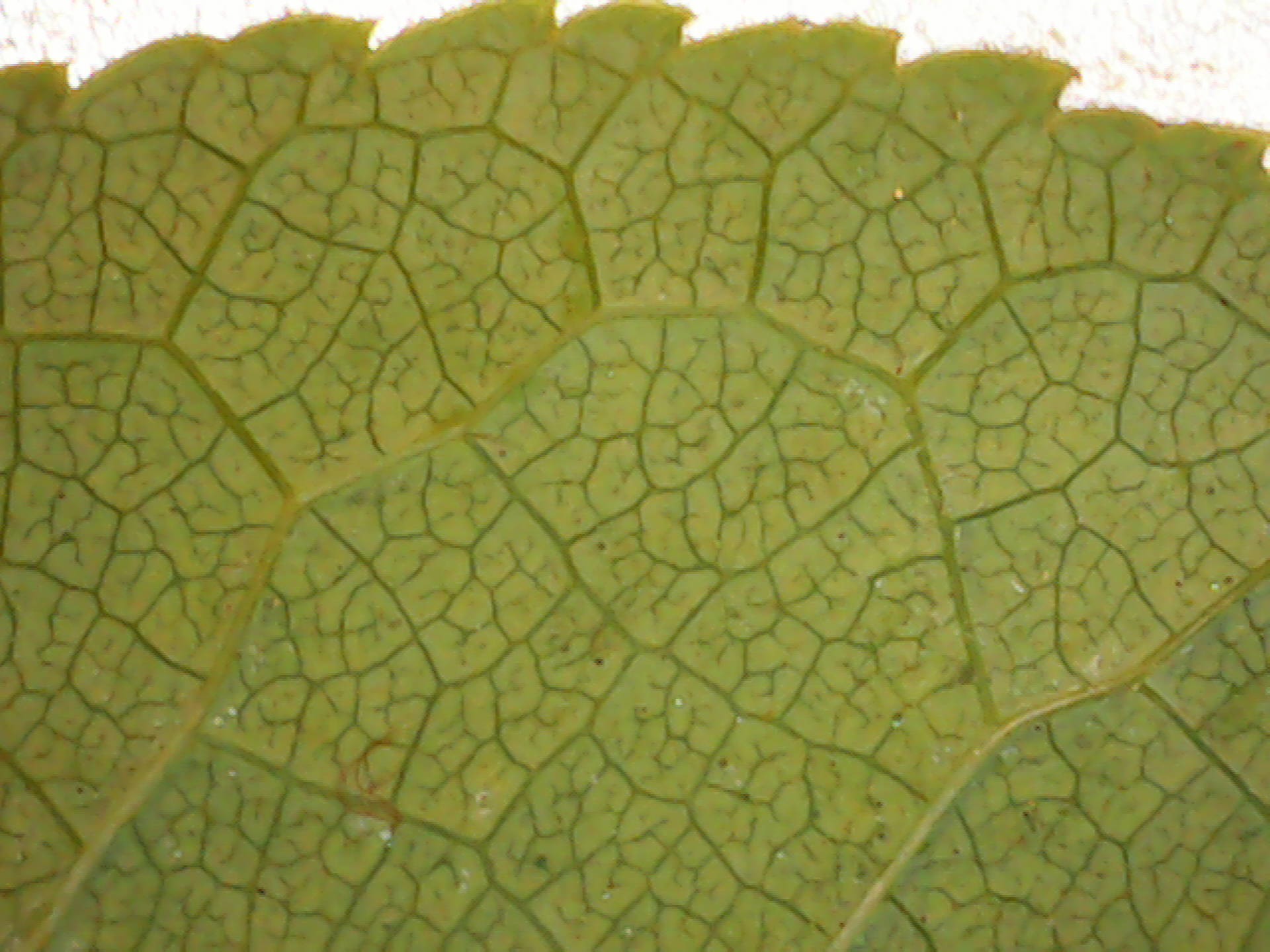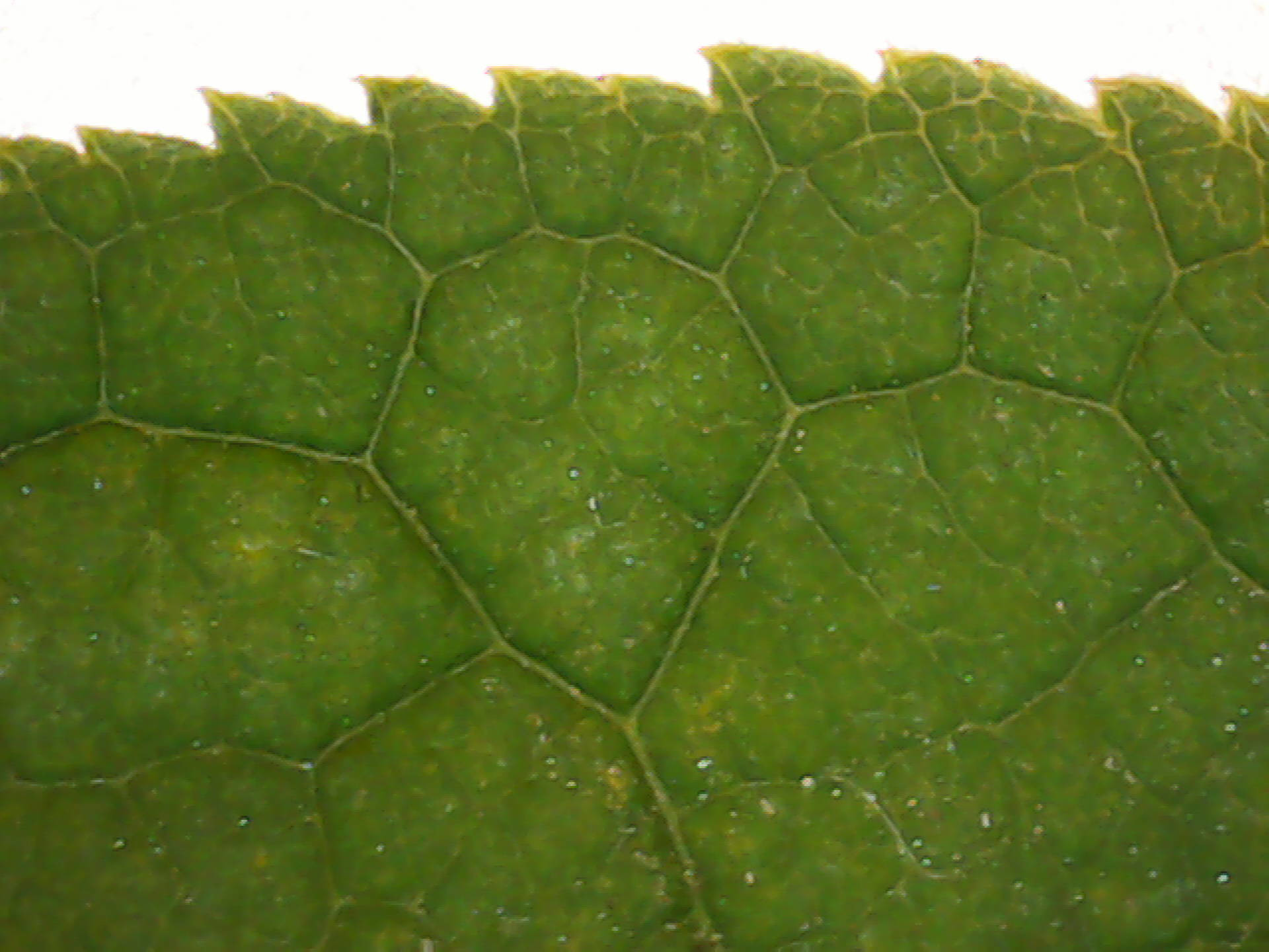 Something my sketch total fails to capture is interesting patterns in between each fork and the edge. Each fork is closed over by an arch, and between each arch there is a bridge of two or three segments. I used my Annlov coin microscope to capture this on the front and the back of the leaf, though it is more clearly seen on the photo I took of the back: