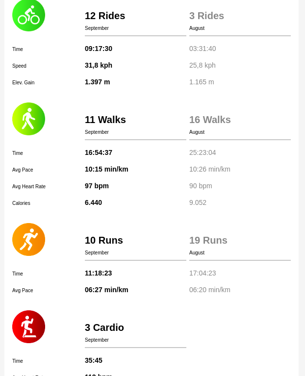 saín menos que o mes pasado, pero non por ningún problema, só que o día ten as horas que ten e non vou queimarme sen ter unha razón (non estou apuntado a competencias)