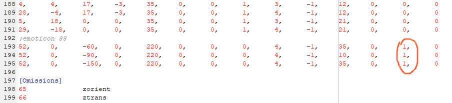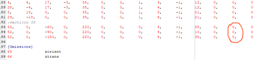These are all currently set to 0, which means the ball is always visible - the normal behaviour. It's my understanding that in Oddballz and Babyz, there are several numbers that correspond to different emotions. According to Carolyn's LNZ Breakdown, these numbers do not work the same in Petz, but to get the behaviour we want (addballz that only show when the pet gets excited) all we need to do is change those 0s to 1s: