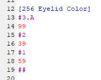 Next in this file is 256 Eyelid Color. You can see the daschund has a few variations, which correspond to the main fur colours.