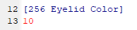 You can blank this out entirely and the game will default to black eyelids. Or you can give it something else - I like to set it to white, because I like making my blank slates white, like a sheet of paper. But it's really up to you.