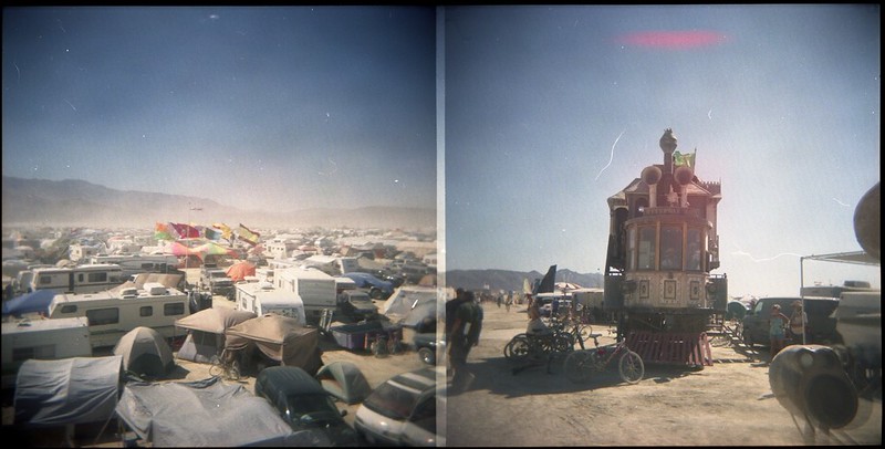 It was around this time I started to become familiar with 'toy' cameras. Not cameras meant for children, but cameras that had their own peculiar constraints, or really, 'failings.' These were almost like cousins to pinhole photography. The first one I learend about was the Holga camera, which I discovered while looking for a medium format pinhole camera to purchase that was affordable. A plastic lightweight camera that is really cheap with plentiful used ones to be found? I learned about the various Holga camera options with plastic lenses. And in these days, pre-twitter, pre-facebook, there was a lively movement of photographers on Flickr.com. I spent hours flicking through, commenting on others' photos, and using the forums to learn various techniques. At a local swap meet I finally found one for sale. For years I used this inexpensive Holga camera, producing unexpected results, goreous images that I was proud of, true collaborations between me and my camera and the light and the subject and the world.
