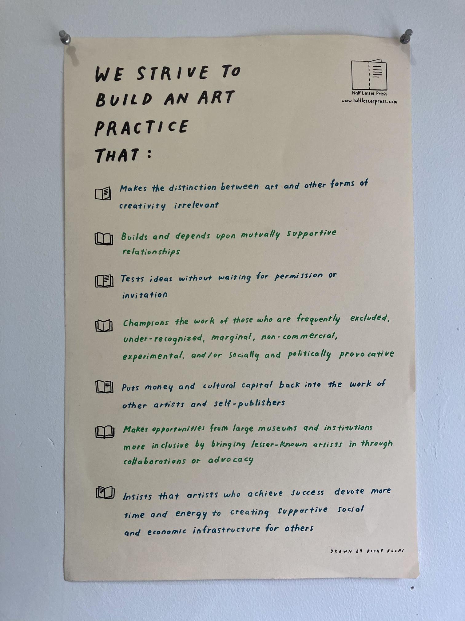 This manifesto can be found as a printed poster for sale through their distro Half Letter Press