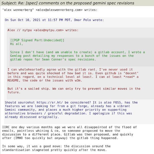 Screenshot of Gemini Mailing list message: