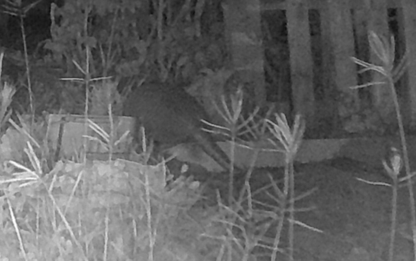 Here is a fuzzy image of what caused the damage. I plan on using a cage trap so I can relocate the guilty party away from my garden.