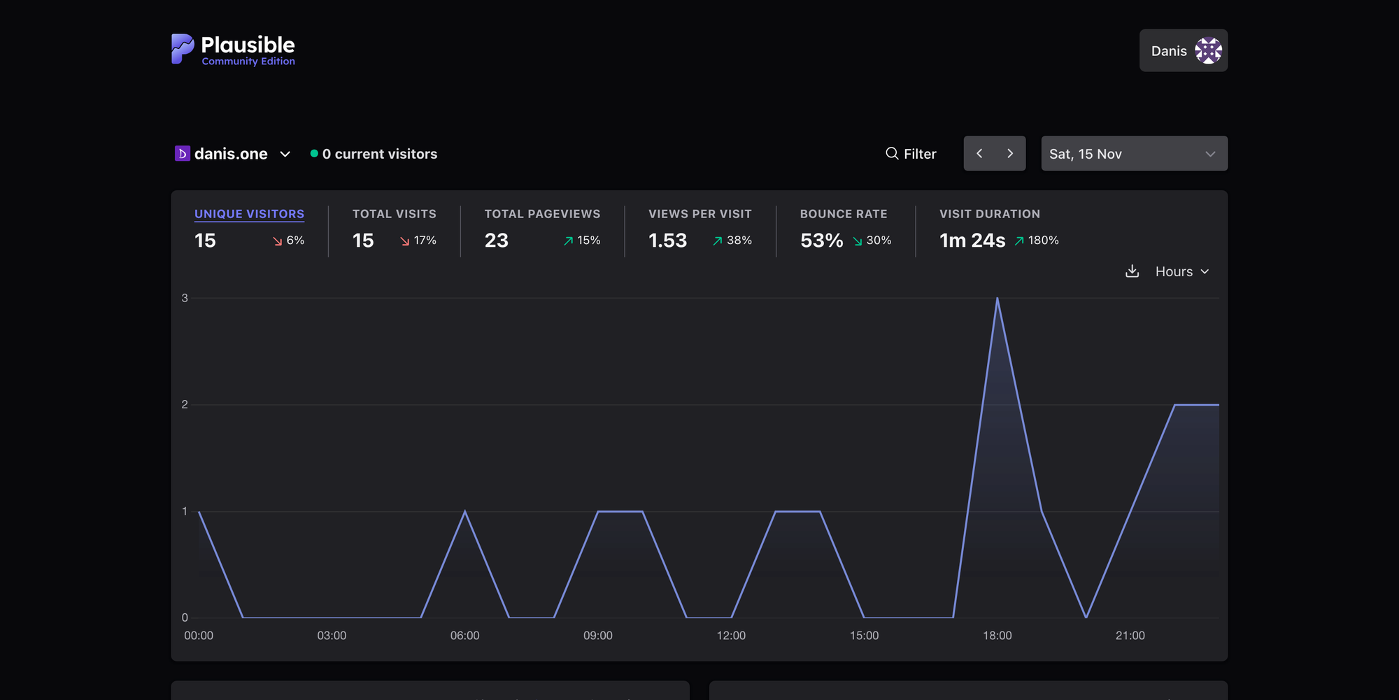 Plausible [22] — аналитика посещаемости сайтов [🖼️ 3] [23] Вот так скромно люди заглядывали в мой блог в минувшую пятницу Не совсем инфраструктурный сервис, но обслуживает разные мои проекты, поэтому тоже будет в этой категории. Как гугл аналитика, только своя, личная. Есть интеграция с гуглопоиском — можно увидеть, по какому запросу пришли на сайт. Ну и всякими баннерорезками хуже детектится. Из неприятного — он мало что может сказать о пользователях (но мне оно и не надо), а также кривовато считает, сколько времени пользователь пробыл на сайте.