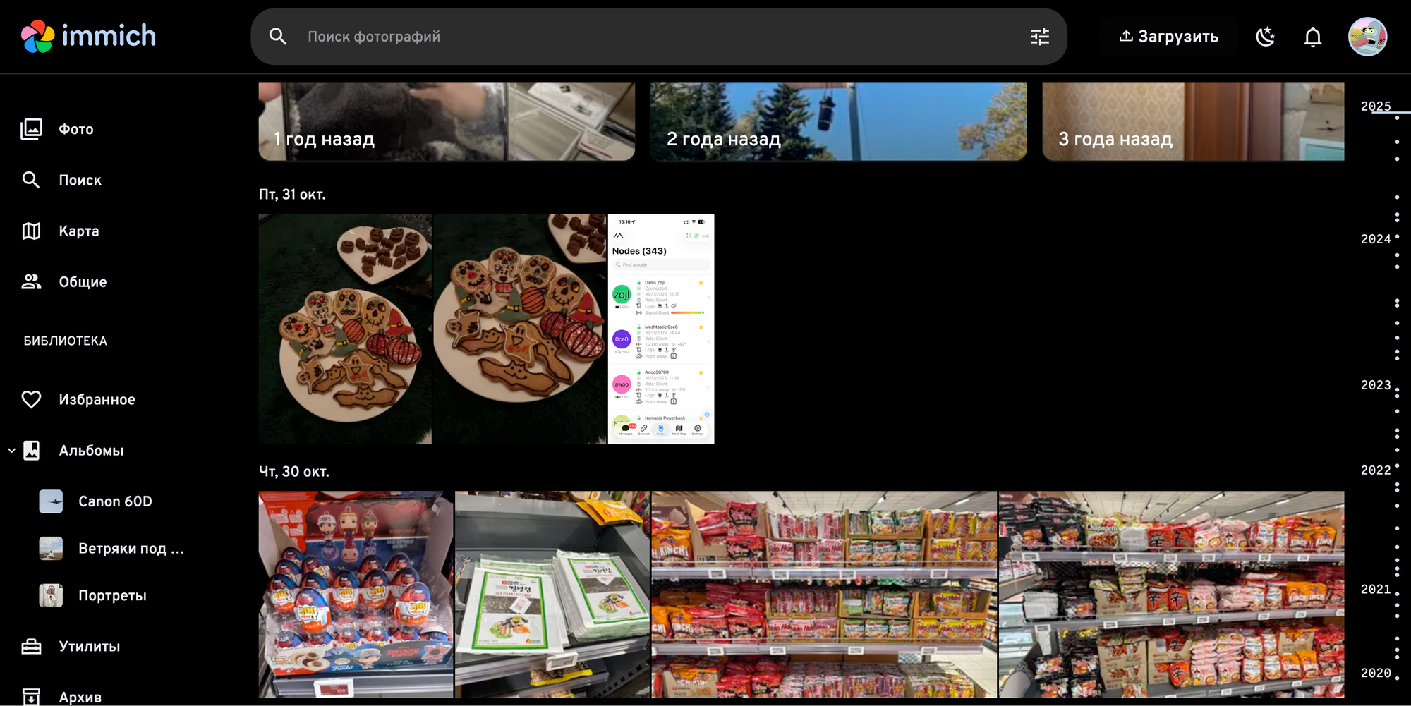 Immich [28] — фотоархив [🖼️ 5] [29] Теперь все знают, что я фоткаю не счётчики, а полки в магазинах, лол Nextcloud всё-таки для фоток довольно медленный, поэтому рядом развернулся новый сервис. У него удобное приложение, которое позволяет синхронизовать фотки с телефона (у некстклауда тоже можно, впрочем). И можно развернуть несколько локальных моделей, которые будут распознавать лица и контекстные данные на фотках, чтобы было проще искать. Они работают неидеально, но приемлемо. В целом — круто.