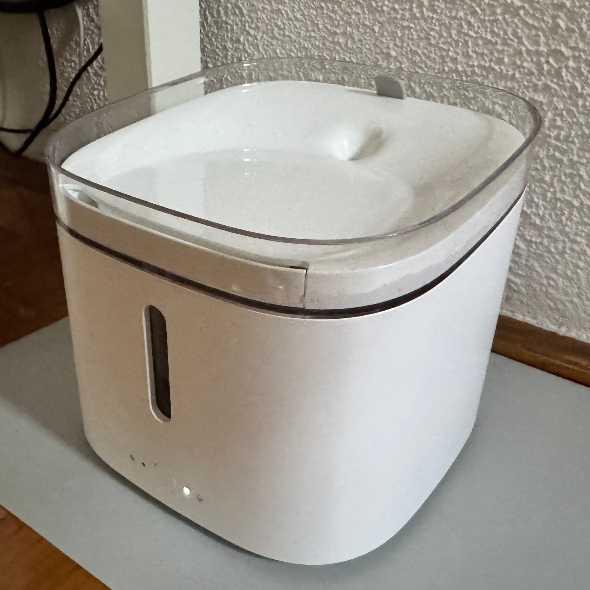 Затем также обзавелись и поилкой Smart Pet Fountain. Её функционал ещё проще: в неё заливается до двух литров воды, которые она потом гоняет насосом через фильтр в небольшое углубление-мисочку. Куплена эта штука, просто потому что в обычных мисках вода застаивается и её надо регулярно менять, а у фонтанчика во избежание такого есть фильтр, и мыть можно значительно реже. Управление минимальное: можно лить воду, можно не лить, можно делать это интервально: днём 10 минут через 10 минут, а ночью 10 минут активности и потом 50 минут отдыха. Если правильно собрать, то работает бесшумно и даже не журчит. Иногда может затупить и начать ругаться на ошибку насоса, хотя фактически с ним всё нормально.