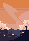 The second idea I worked on was originally only a planet-rise over some mountains, but it evolved quite a bit as I worked on it until it was about spaceships racing over a peaceful alien village.