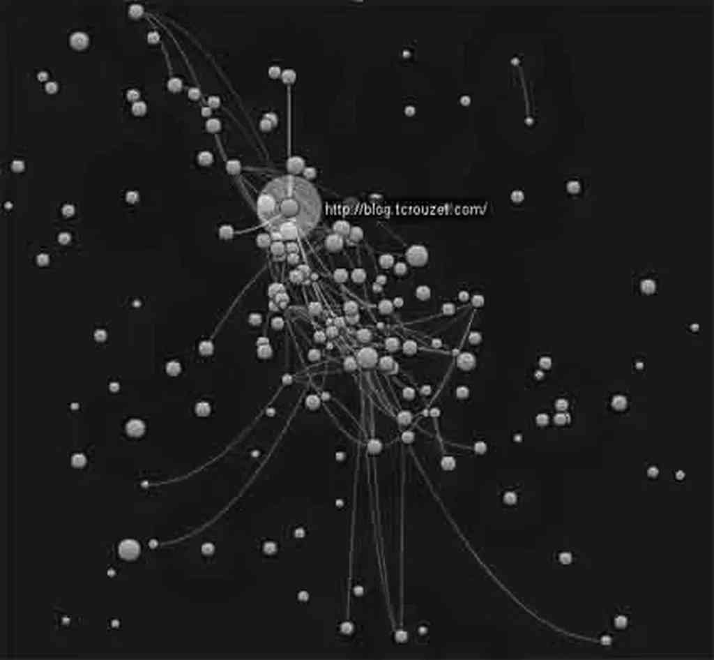 RTGI vient de sortir sa nouvelle cartographie, en exploitant en partie de corpus de bonVote.com, ce qui permet de faire apparaître tous les sites politiques et non seulement ceux des grands partis. Les blogueurs non alignés comme moi ont aussi dorénavant leur place dans ce classement.