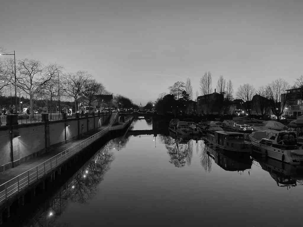 Dès que je m’éloigne le long du canal, j’en arrive à sa frontière autoroutière pauvrement délabrée, toujours sans perspective, avec de rares promeneurs à qui je dis bonjour sans qu’ils ne relèvent la tête, percevant peut-être mon accent dans ce seul « bonjour » et m’estiment trop étranger pour commettre le moindre effort.