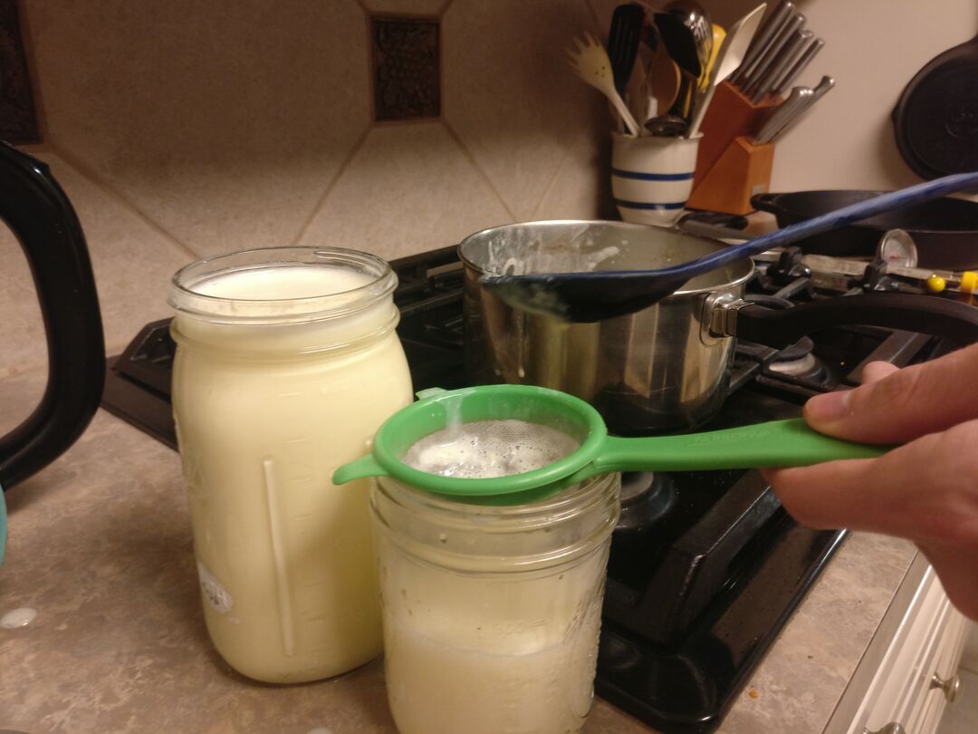 - [optional] Blend the curdled eggnog with a blender until consistent.