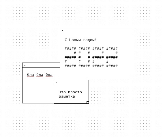 4) Текст не форматируются. Заметки можно перетаскивать, менять размеры, накладывать друг на друга.