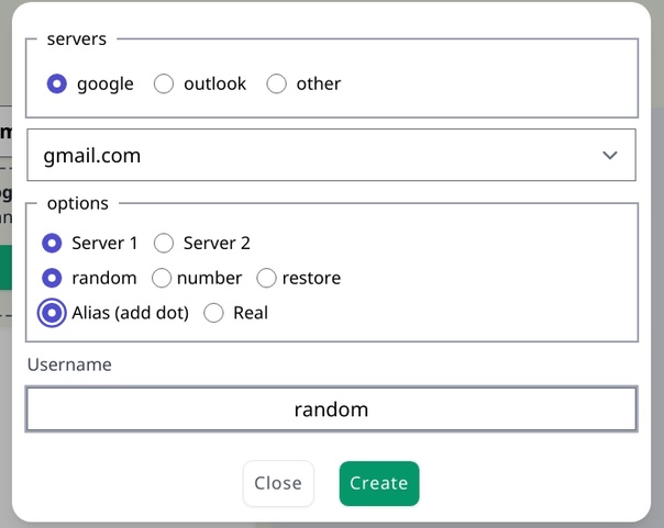 3) В графе "Servers" можно выбрать почтового провайдера и домен.