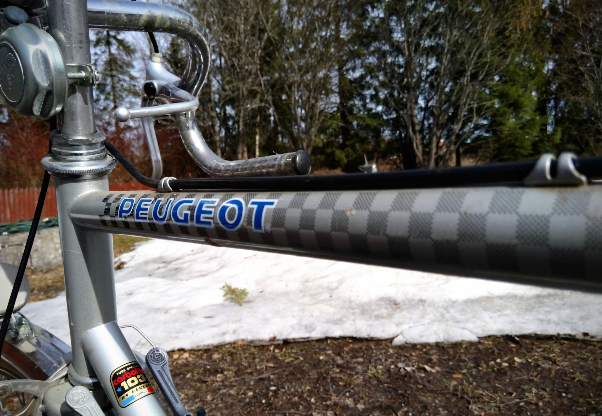 It's a Carbolite 103 frame which, if I'm correct, was used in the lowest end bikes Peugeot made in the 1980s. I haven't been able to ride the bike that much yet but it doesn't feel that bad. It's not as heavy as I expected it to be.