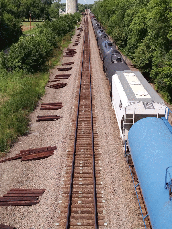 My cycling route around town takes me across a bridge over a set of railroad tracks. THe town is rural and very quiet, and when I stop on the bridge, I can often hear trains coming from a mile away or more. No trains passed by on this day, but the view down the open tracks was an aesthetic one.