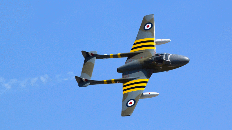 I attended an air show in the Kansas City area this weekend, at which I took hundreds of photos with my SLR camera. One of the most special moments for me was an aircraft I didn't even know was going to be there. This de Havilland Vampire was built in 1959 and served in the Swiss Air Force before being sold in 1991, at which point it changed hands a number of times before being purchased by a Delaware foundation in 2022.