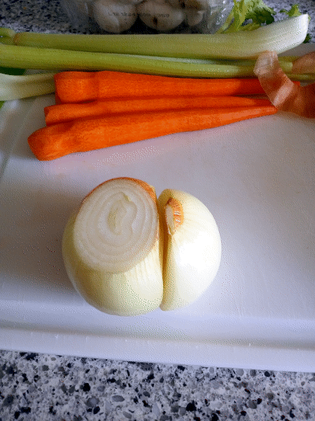 We made some soup for our New Year's Day lunch. Upon peeling an unusually-large onion, we discovered that it had two bulbs inside. I take this as a good-luck charm for 2025.