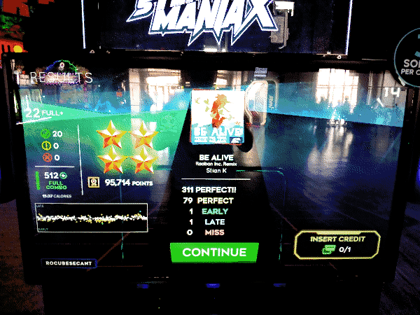 I primarily play StepManiaX in order to exercise, focusing on sustained play at a moderate level instead of high-level skill. This week I decided to try some charts a few levels higher than I normally play. The resulting score caught me completely off guard. I guess I'm better at the game than I thought I was.