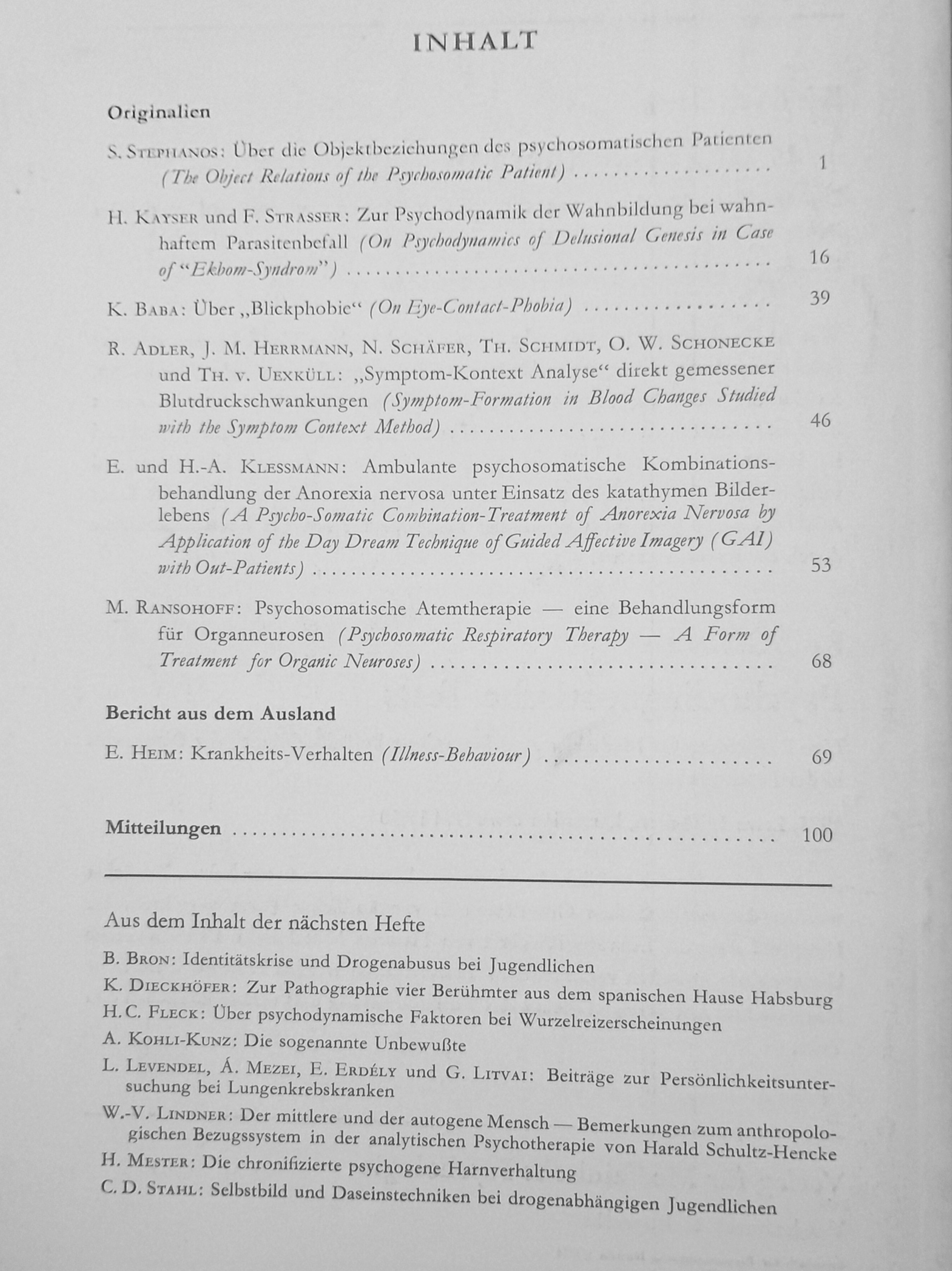 On psychodynamics of Delusional Genesis in Case of "Ekbom-Syndrom", H. Kayser, F. Strasser.