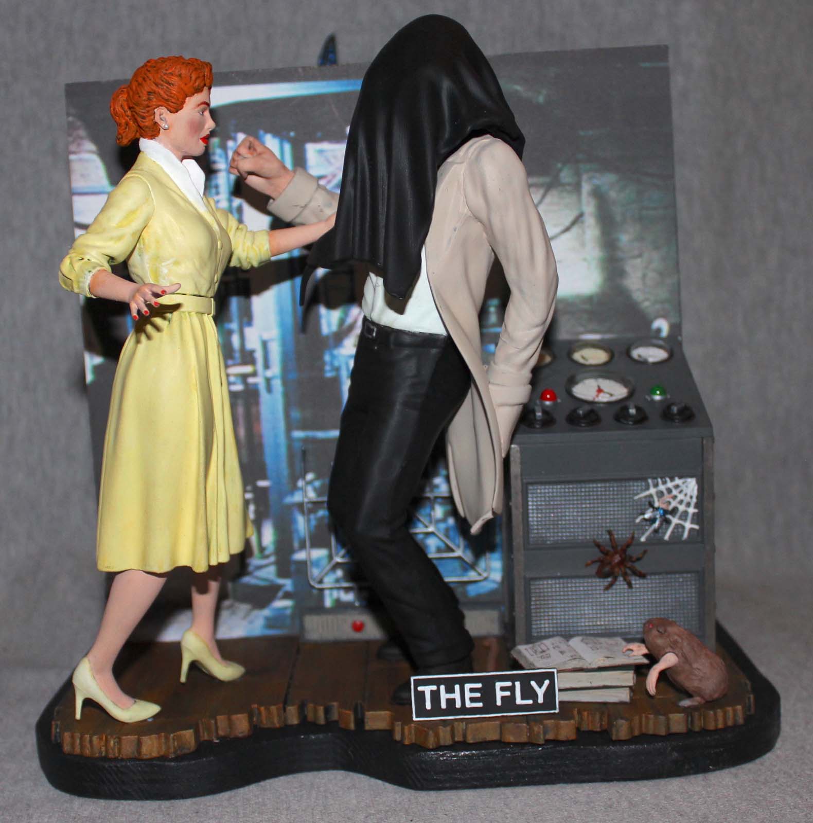 The Fly (1958) tells the story of a scientist who is transformed into a grotesque human?fly hybrid after a common house fly enters unseen into a molecular transporter with which he is experimenting, resulting in his atoms being combined with those of the insect. The film was released in CinemaScope by 20th Century Fox, with color by Deluxe. It was followed by two black-and-white sequels, Return of the Fly (1959) and Curse of the Fly (1965). A remake directed by David Cronenberg was released in 1986.