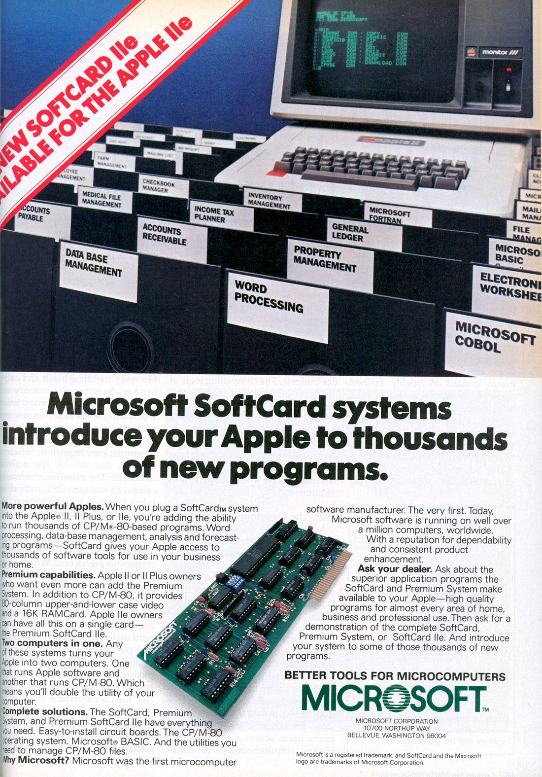 Microsoft SoftCard - Ad 1.jpg Microsoft Soft Card Ad 1 Photos Microsoft Soft Card [Z80] Cards Interface Cards Apple I…