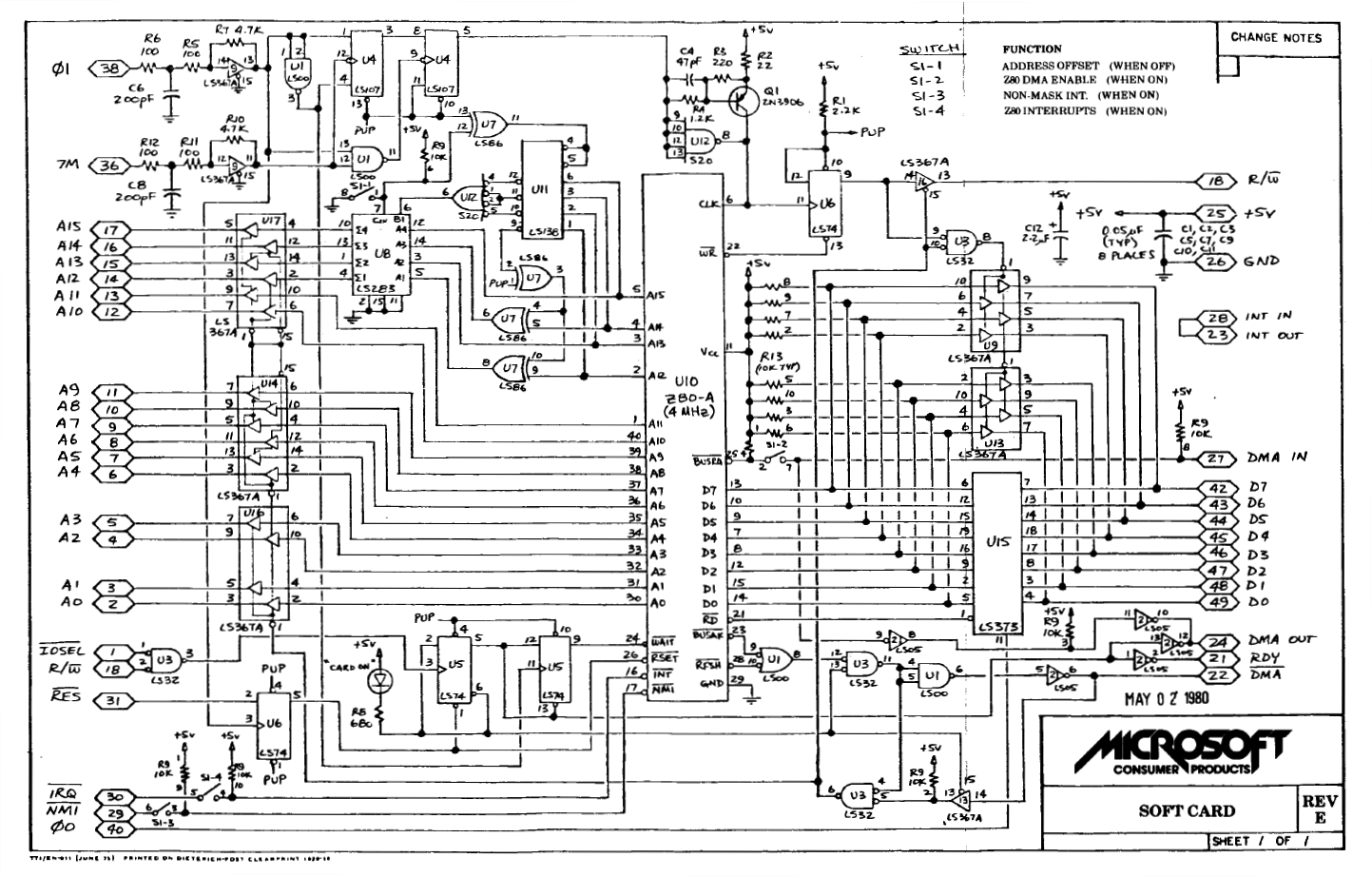 …E - Schematic.png Microsoft Softcard rev E Schematic Schematics Microsoft Soft Card [Z80] Cards Interface Cards Apple I I Documentation…
