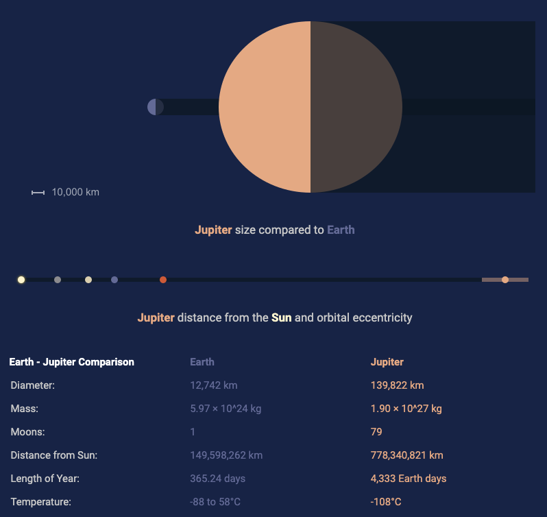 Its rings are composed mainly of dust particles ejected from some of Jupiter’s smaller worlds during impacts from incoming comets and asteroids. The ring system begins some 92,000 kilometres above Jupiter’s cloud tops and stretches out to more than 225,000 km from the planet. They are between 2,000 to 12,500 kilometres thick.