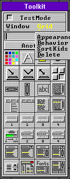 Με την βοήθεια του toolkit μπορούμε να δημιουργήσουμε παράθυρα,κουμπιά και ότι άλλο προσφέρει το GuiDesigner για να κατασκευάσουμε το περιβάλλον της εφαρμογής μας. Για να φανούν οι δυνατότητες του, θα αναφέρω παρακάτω ένα-ένα τα εικονίδια και τι κάνει το κάθε ένα. Πρώτα από όλα να δούμε τι κάνουν τα μενού.