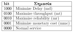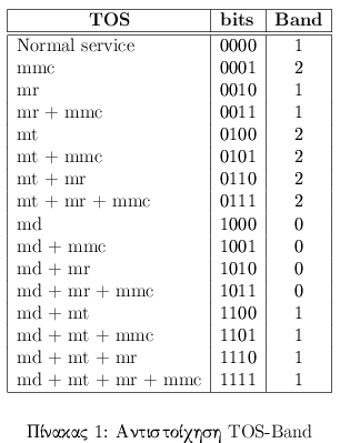 Η ταξινόμηση των πακέτων σε κάθε ένα από τα τρία bands γίνεται όπως φαίνεται στον πίνακα.